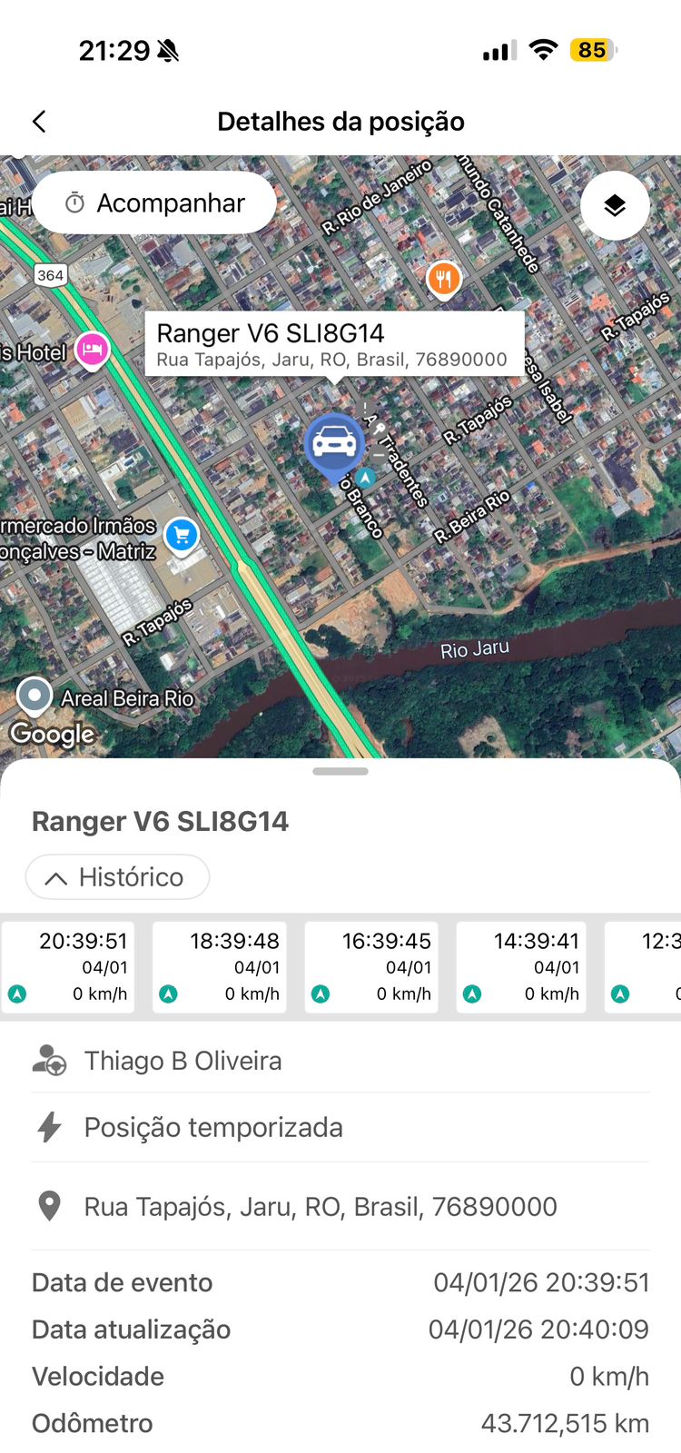 Acompanhamento em tempo real do motorista